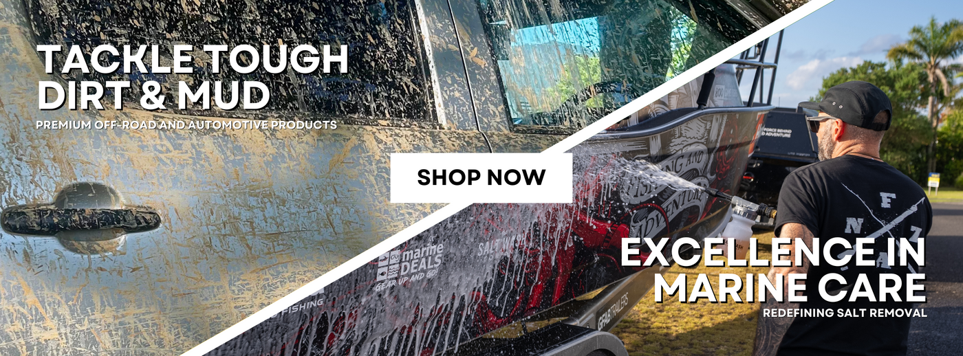 At The Salt Wash Company, we're not just offering products; we're delivering a commitment to superior marine, Off-Road and Automotive care. Our range of meticulously crafted solutions is designed to redefine the standards of excellence in maintenance. From the gleaming finish of our Marine Wash to the powerful performance of our Off-Road & Automotive Wash, while knowing your outboard is ready for the next adventure with our Engine Flush. Each product reflects our dedication to innovation and sustainability. Available in stores now!